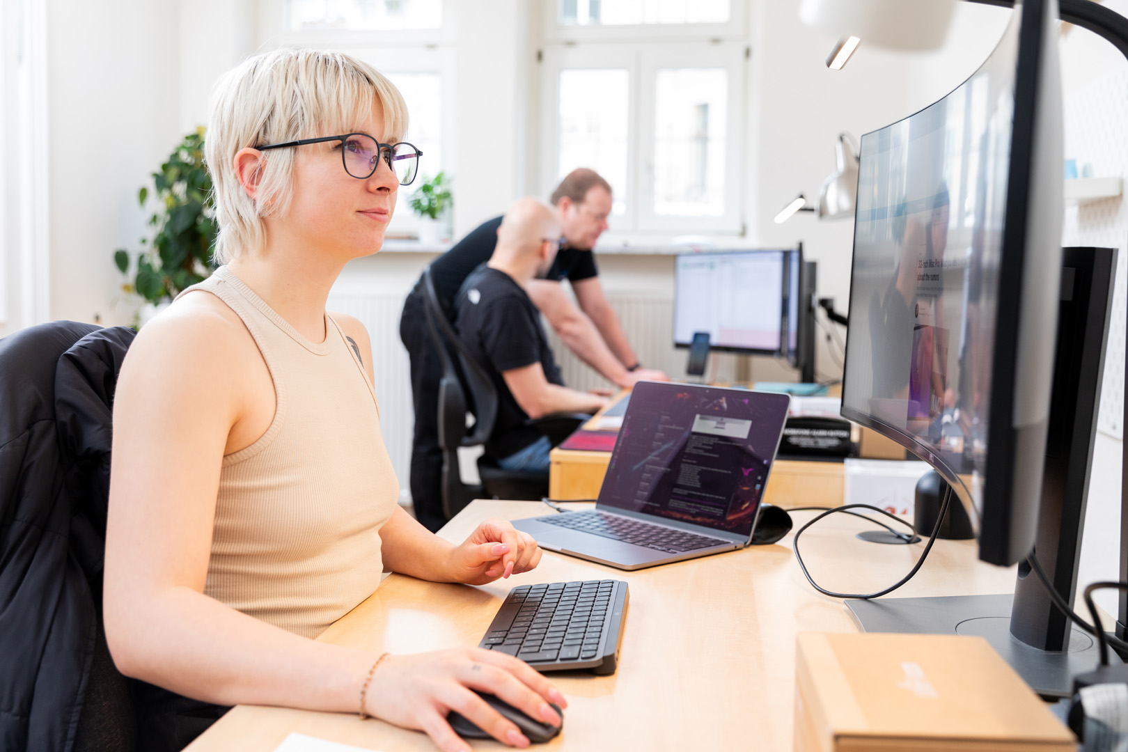 Die Mitarbeitenden haben weitgehende Freiheit in der Gestaltung Ihrer Arbeit. Dennoch werden sie mit komplexen Herausforderungen nicht allein gelassen. Wir stimmen Verfahrensweisen und Technologien im Team ab und entlasten uns gegenseitig.